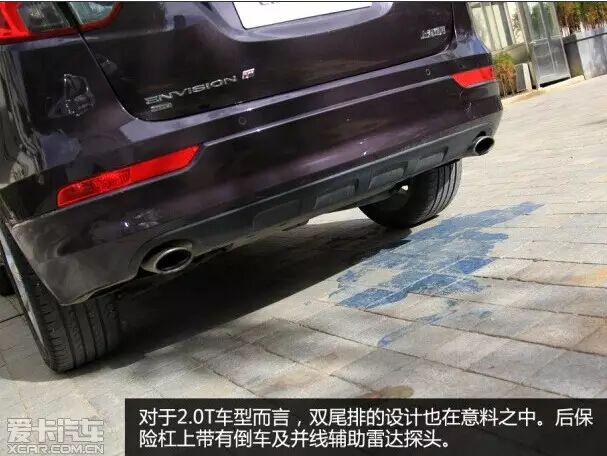 侧面采用双腰线设计,增强立体感的同时也让车身显得更加修长。外后视镜带有电动调节/加热/折叠/LED转向灯,并集成了并线辅助系统报警灯。车尾同样采用了家族式设计,尾门上镀铬饰条的位置恰到好处,增添豪华质感。对于2.0T车型而言,双尾排的设计也在意料之中。后保险杠上带有倒车及并线辅助雷达探头。